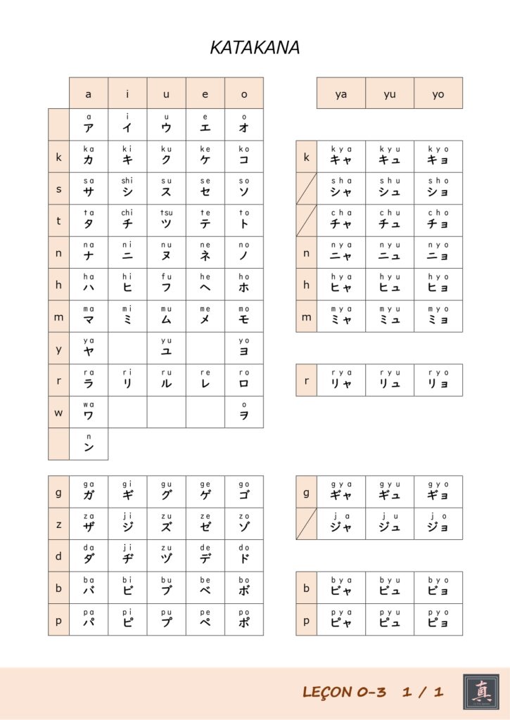 Après les hiragana, nous apprendrons les katakana ! Tu pourras télécharger ce tableau en cliquant