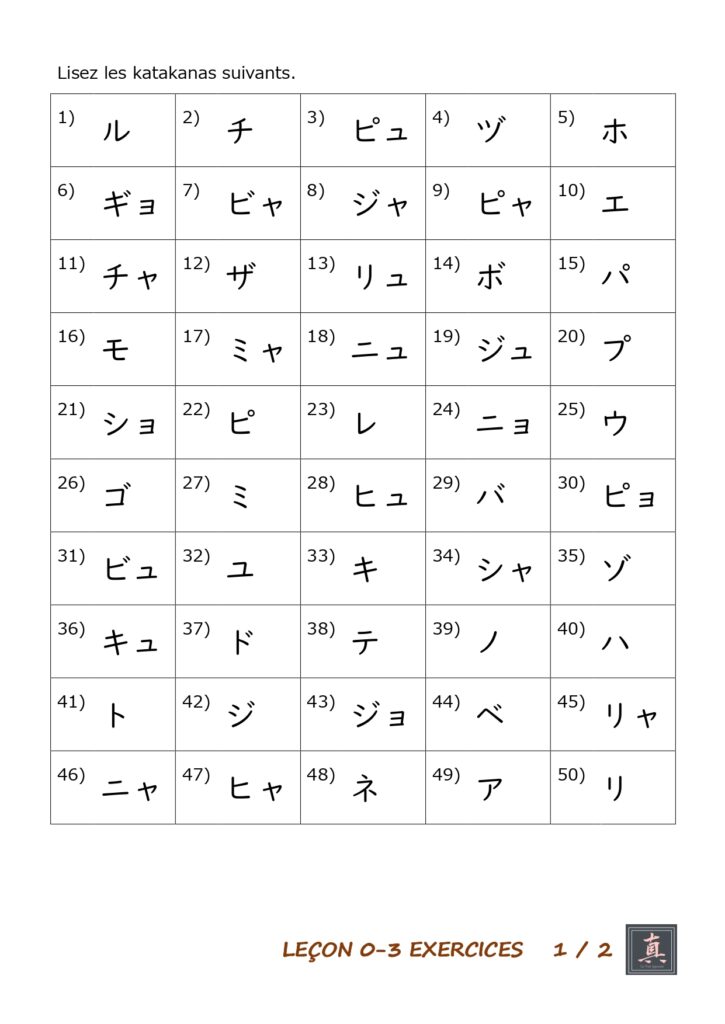 Petits exercices de Katakana. Tu peux également télécharger en cliquant sur « Télécharger les fiches » sous le nom « Exercices (Introduction) ». La réponse se trouve aussi dans « Télécharger les fiches »
